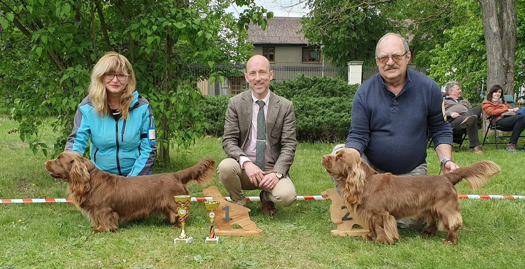 Zamilovala jsem se do fotek a začala pátrat, kde bych toto plemeno mohla vidět naživo. Osud tomu chtěl, že dvě sussex španělky žily kousek od nás. Návštěva byla úžasným zážitkem! Obě fenky nás přivítaly s takovou radostí, vlnily celým tělem, jako by se smály. A ten dotek srsti? Jemná, měkká, prostě samet! Okamžitě bylo rozhodnuto: potřebujeme sussex španěla! Líbila se mi jejich veselá povaha, střední velikost a nádherná zlatá barva srsti. Navíc jsou to neskuteční mazlíčci. Jenže sehnat štěně sussexa nebylo vůbec jednoduché. V Česku ani v okolních státech prostě nebyla. Nakonec se nám podařilo získat kluka ze Švýcarska, našeho prvního Boysse. A tak začala naše nová éra s těmito úžasnými psy. K Boyssovi se brzy přidaly dvě fenky, Equisetta Pejšar a Cherryl Lovjed’s, a tak jsme založili chovatelskou stanici Boysson Bohemia, na počest našeho prvního sussexe. Letos slavíme 24 let!